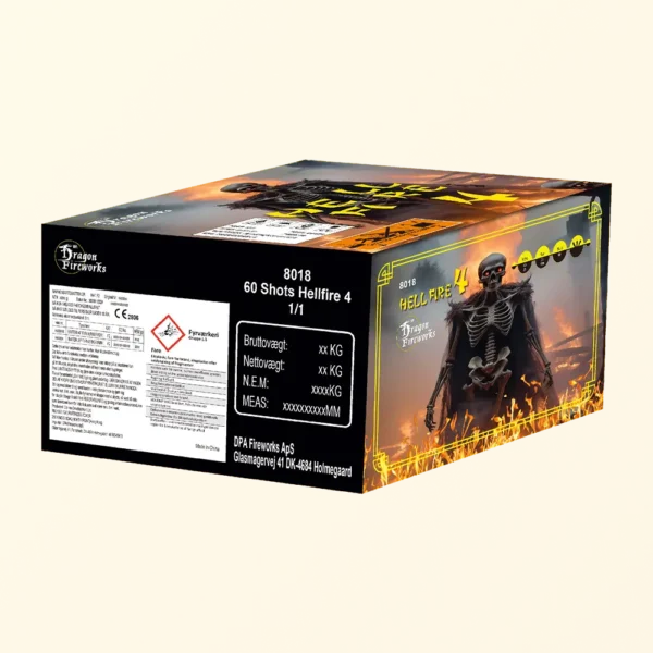 Hell Fire 4 – 60 Skuds 25mm er et vildt og imponerende fyrværkeri, der leverer et spektakulært show med hele 60 kraftfulde skud. Hver affyring fylder nattehimlen med intense, farverige eksplosioner, dramatiske blink og glitrende stjerner, der skaber et storslået lys- og lydeventyr. De 25 mm skud sprøjter i alle retninger og spreder lys og magi, hvilket giver en uforglemmelig og eksplosiv oplevelse. Perfekt til dem, der søger et ekstraordinært og energisk fyrværkeri, der virkelig sætter gang i festen med stor effekt og fantastisk visuel imponerende!